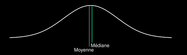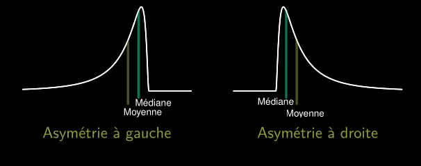 La moyenne et la médiane sont proches pour des distributions symétriques : La moyenne se déplace dans la direction de l’asymétrie d’une distribution :