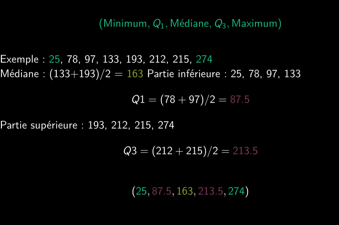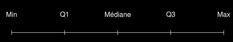• Quartiles : observation centrale au-dessus et en dessous de la médiane.