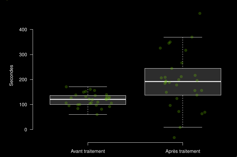 Exemple : résultats de tests pulmonaires avant et après traitement