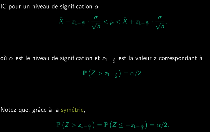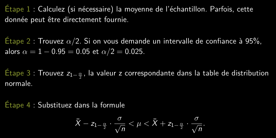 Étapes pour calculer un intervalle de confiance pour µ avec σ connu