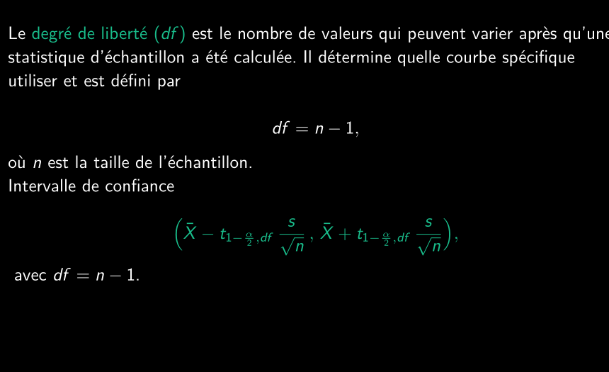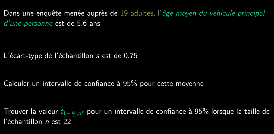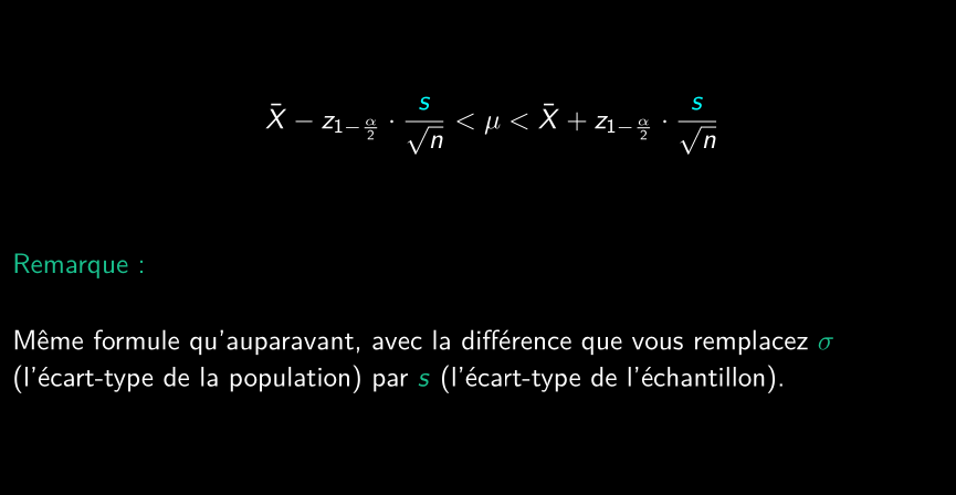 Intervalle de confiance pour la moyenne µ de la population avec σ inconnue