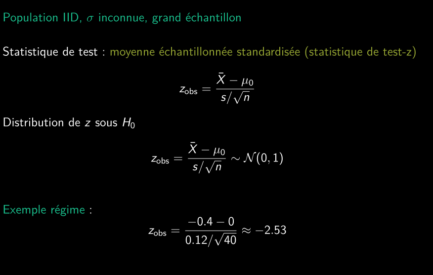 • Étape 2 : Calculer la valeur de la statistique de test zobs ou tobs.