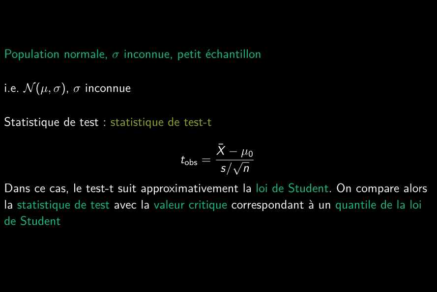 • Taille de l’échantillon petite (n < 30), population IID normale.