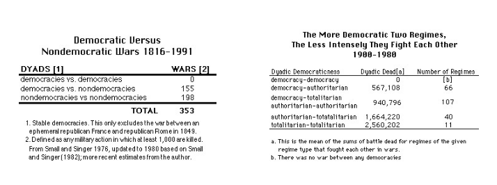 Démocraties sont plus enclines à adhérer aux normes communes de respect et de non-violence dans leurs interactions que des non-démocraties.