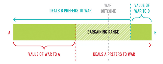 Pays ont des prévisions différentes au sujet de l’issue de la guerre; ils ont alors des positions incompatibles sur la zone possible d’accord.