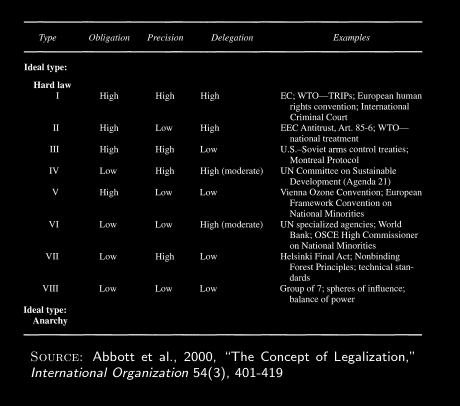 - Obligation : explicitement contraignant; clause de sauvegarde; règles incitatives; recommandations; non contraignant.