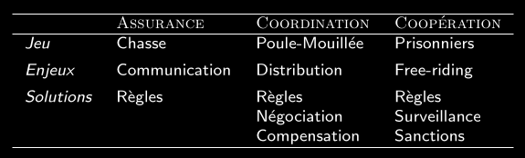 - La coopération dépend des coûts de transaction, règles comportementales, la stratégie appropriée, information disponible et l’ombre du futur.