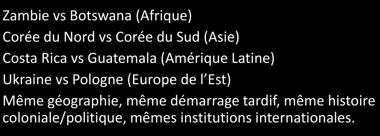 - Par exemple : Corée du Sud = pas de ressources naturelles mais trajectoire exemplaire de développement.