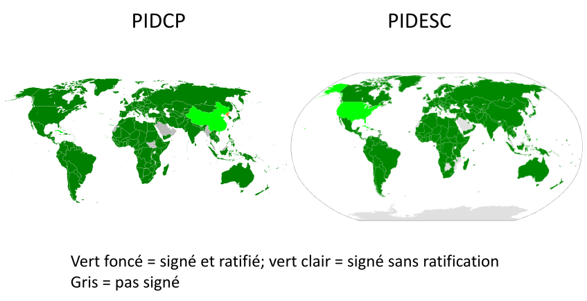 - PIDCP défendu principalement par pays occidentaux / PIDESC défendu principalement par pays se disant socialistes = objet de lutte idéologique.
