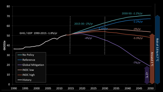 • Une forte diminution des émissions mondiales s’avère indispensables en vue de réduire ces émissions pour que la hausse de la température de la planète reste inférieure à 2°C.