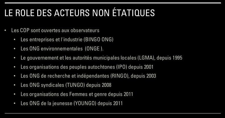 • La CCNUCC établit en 1992 une conférence des Parties (COP).