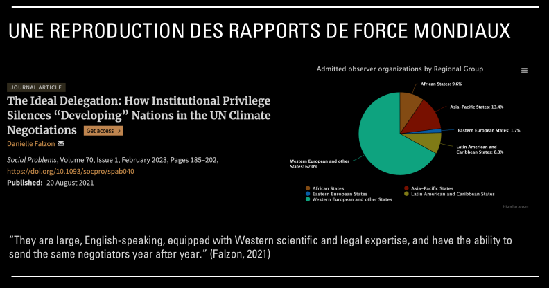 • Centralité des enjeux de justice et de partage des responsabilités (enjeux national et international) → pas qu’une question d’intérêts économiques. Chine aide plus que les monde le penserait.