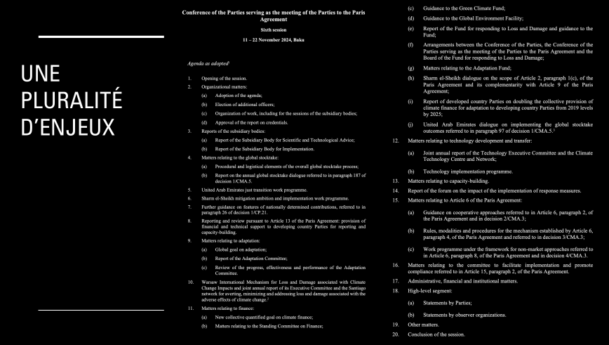 • Lors de la COP, les négociateurs ont pu donner l’impression que le processus continuait dans sa bulle, sans se soucier des chocs du monde. C’est en partie vrai car ces négociations sont très spécialisées, et la délégation américaine, encore menée par l’administration Biden, a joué le jeu. Mais la faiblesse du nouvel objectif de financement climatique est sans doute aussi liée au fait que les Etats-Unis n’y contribueront pas lors des quatre prochaines années. (Aykut).