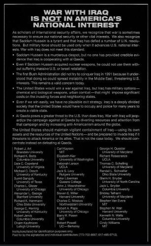 …war is sometimes necessary to ensure our national security or other vital interests…But military force should be used only when it advances U.S. national interests. War with Iraq does not meet this standard.
