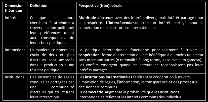 Notions essentielles de l’institutionnalisme (néo)libéral
