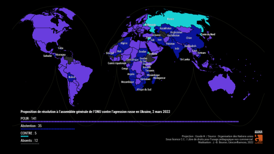 - C’est la première guerre interétatique depuis la deuxième guerre mondiale dans laquelle une grande puissance (i.e. Russie) cherche à gagner des territoires et à changer un régime.