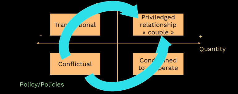 The job of diplomats is getting to privileged relationship. Quantity=amount of shared interests or negotiation opportunities. Quality=capacity to agree.
