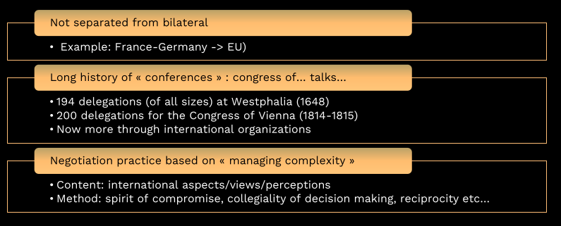 • Favoured platform for agreements reached internationally (reinforcement since 2006: Newmann & al, 2006).