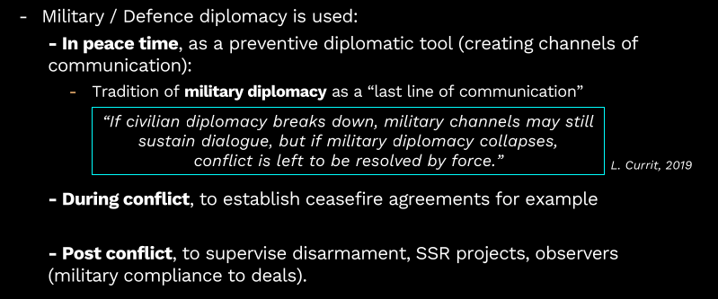 • Military diplomacy end of cold war (military rel. concept of the past).