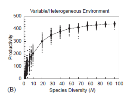 - Higher diversity contributing to increases in the productivity of ecosystems (Tilman et al., 2005).