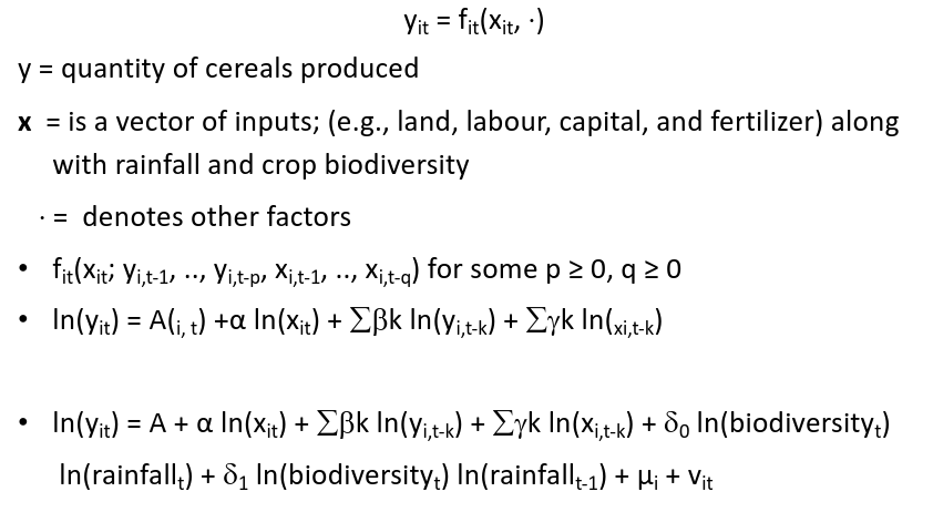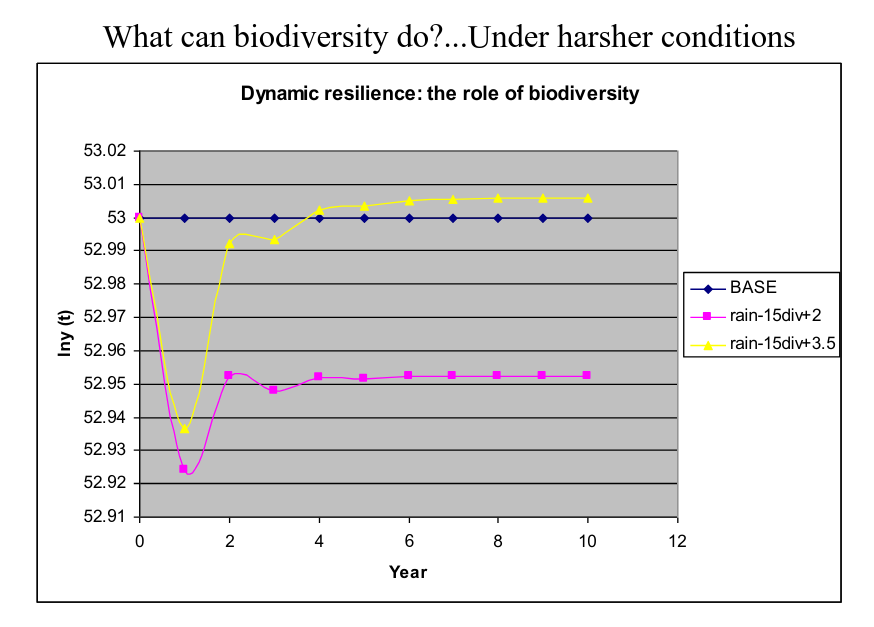 What is the impact of biodiversity, rainfall shocks and their interaction on production