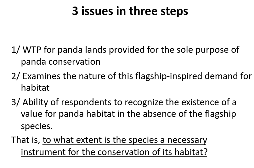 - Contingent valuation (CV) that elicited willingness to pay (WTP) of OECD citizens, for the conservation of the Giant Panda.