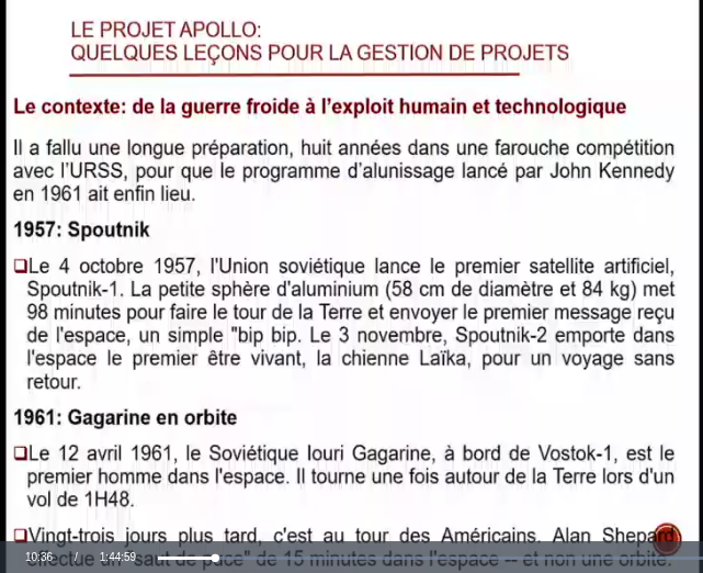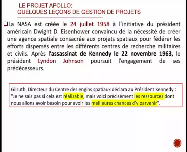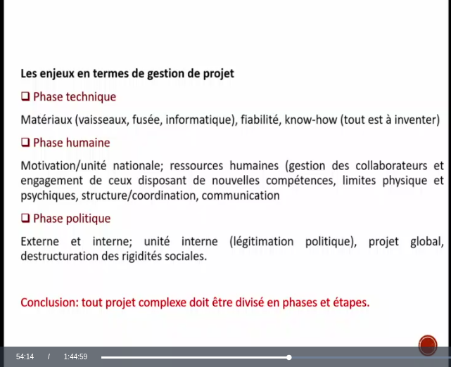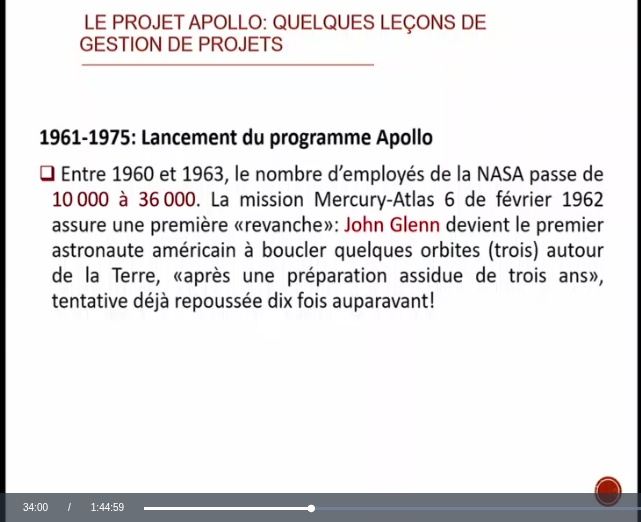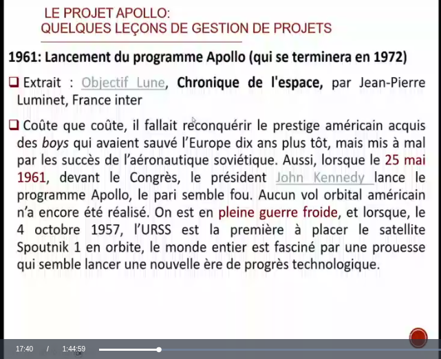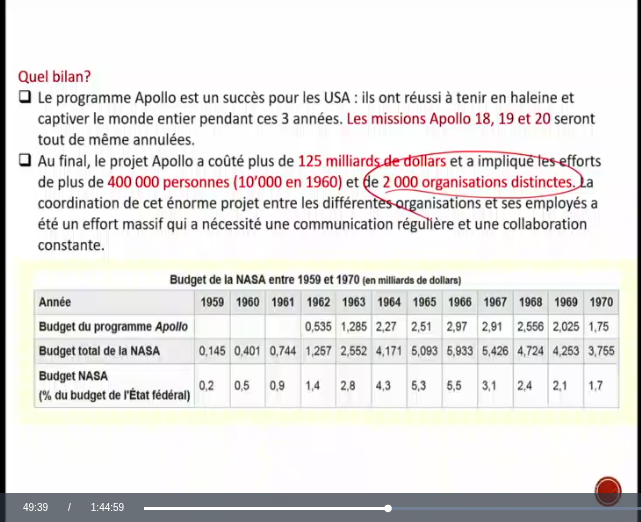 Des fois dans les projets il y a des catastrophes. Cela peut créer des doutes sur la capacité des personnes en chargent du projet, et puisque tout cela était public c’est dangereux pour la légitimité politique. Il est nécessaire de pouvoir rebondir sur cela. En plus, il est important de ne pas aller trop vite (ils ont un peu oublié les étapes de conception de leur modules à cause de la course de la guerre froide). En gros ici les contraintes étaient temporelles et médiatiques. On va vers des missions plus techniques pour valider les prochaines étapes du projet, certaines comme Apollo 3 sont annulées.