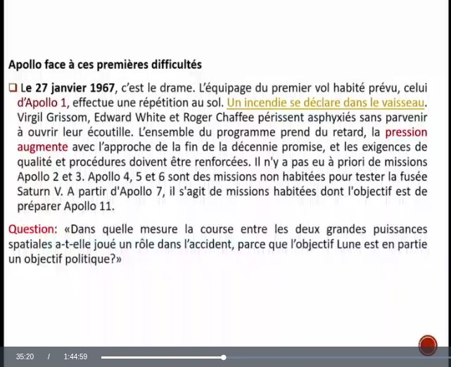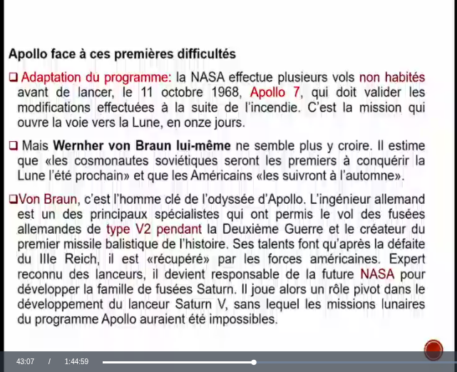 Lorsqu’on commence un projet des fois on sait pas quoi faire exactement. On savait pas comment faire un vaisseau, l’informatique était très jeune (le programme d’Apollo 11 pouvait faire 36 tâches à la fois maximum). En faite il s’est bloqué. Nos natels sont considérablement plus puissants.