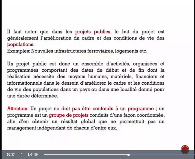 Il faut noter qu’on est dans un programme, composé de plusieurs projets, et pas un simple projet.