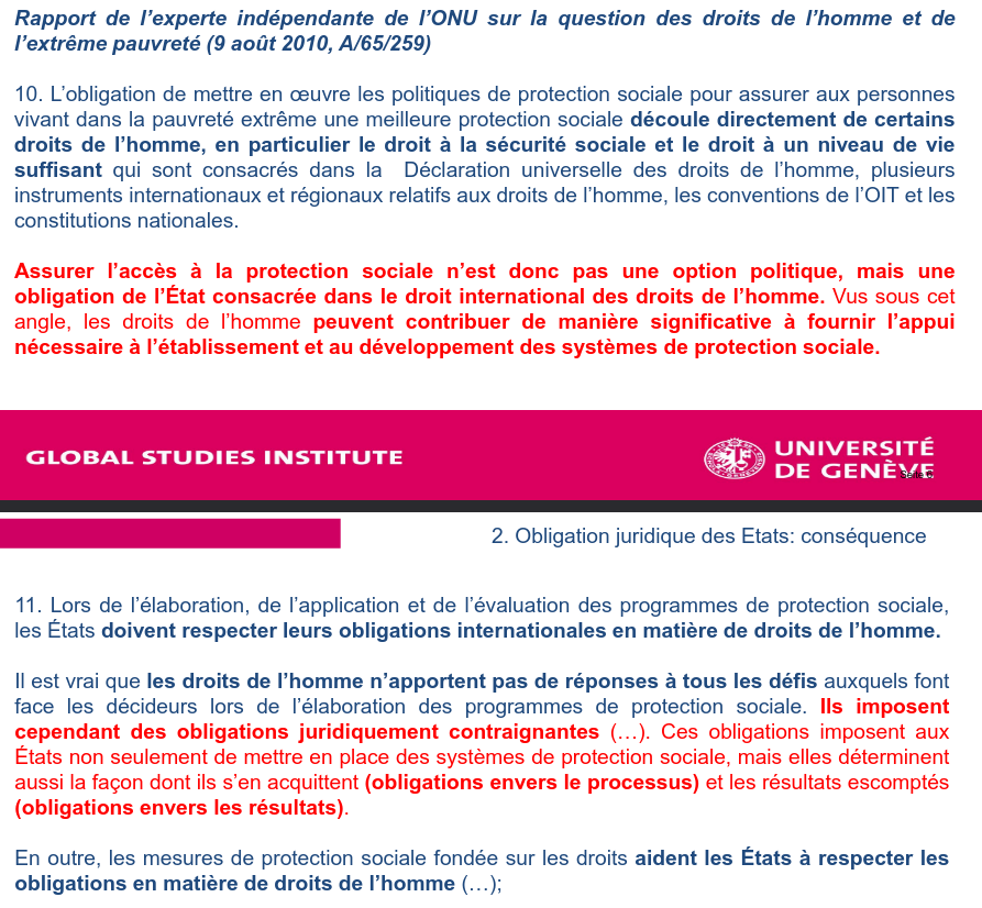 • Rappel pour les Etats que la sécurité sociale n’est pas de la charité