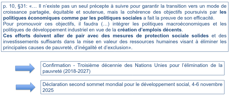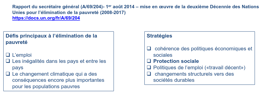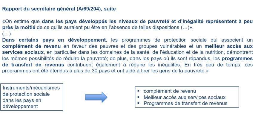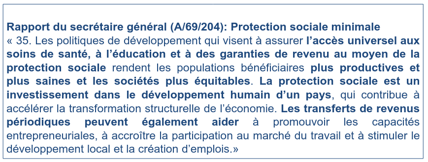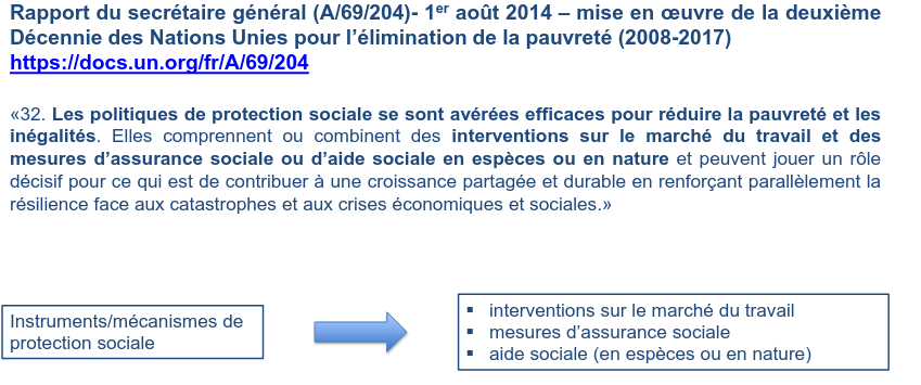 L’utilisation de la protection sociale dans les stratégies internationales comme politique de développement (e.g. Agenda 2030). Il dit que non en utilisant