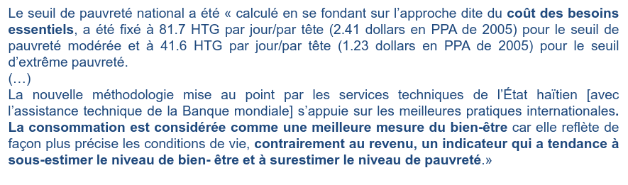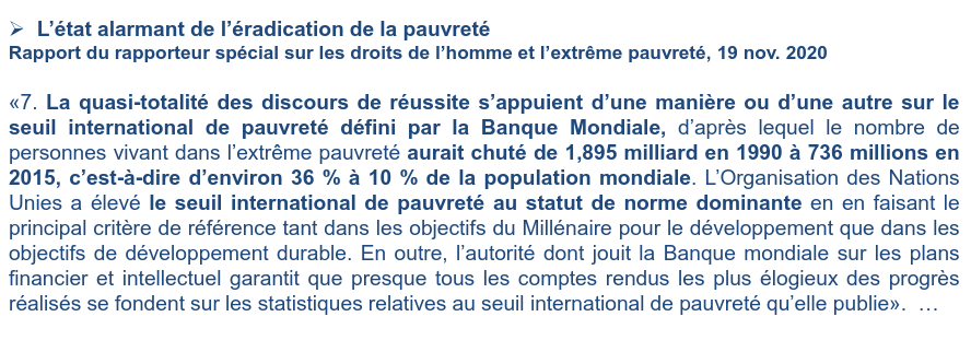 • Seuil de pauvreté entre 1.90 - 2.15 $ par jour (fixé par la BM)